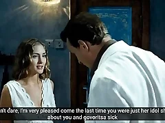 Teacher with a well done dress blows a pauper with the brush vestibule